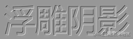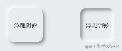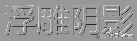 还有一类立体效果的阴影就是浮雕阴影,它的本质还是 box-shadow 和 text-shadow,只是需要控制好颜色的配合以及内外阴影的一起使用。核心就是 2 点: