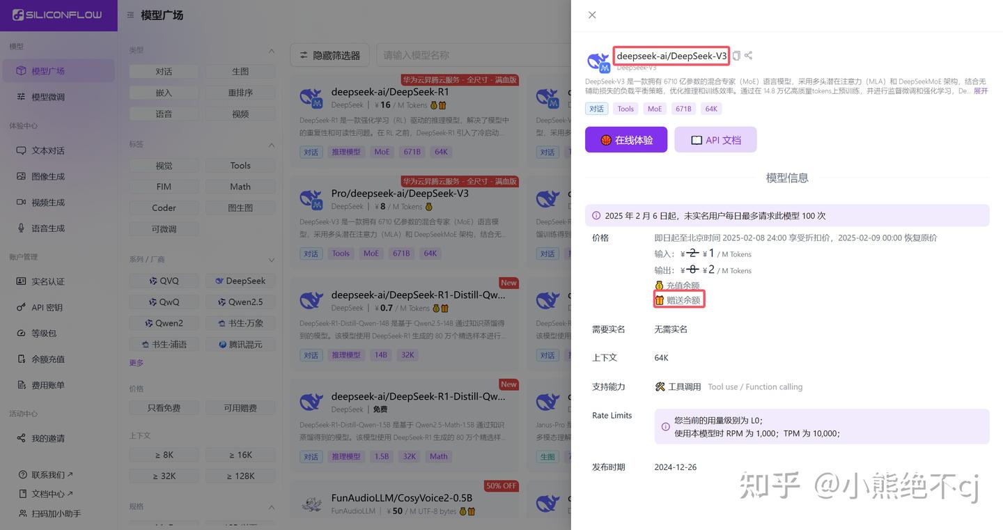 最近Deepseek太火了,官网API暂时用不了,这里用硅基流动的API代替(链接直达,用该链接注册后会赠送2000万Tokens)。