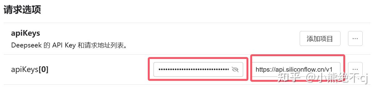 chatluna-deepseek-adapter插件,并添加配置,在配置页--请求选项中,填入上一步复制好的API Key 和 https://api.siliconflow.cn/v1,然后运行插件