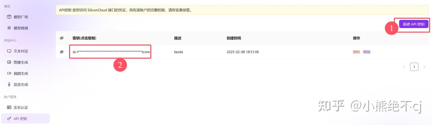 - 注册登录后,进入API秘钥页面, 新建API秘钥 ,然后复制建好的秘钥(下一步会用到)