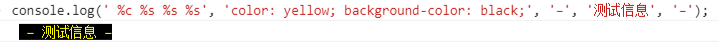console.log(' %c %s %s %s', 'color: yellow; background-color: black;', '–', '测试信息', '–');